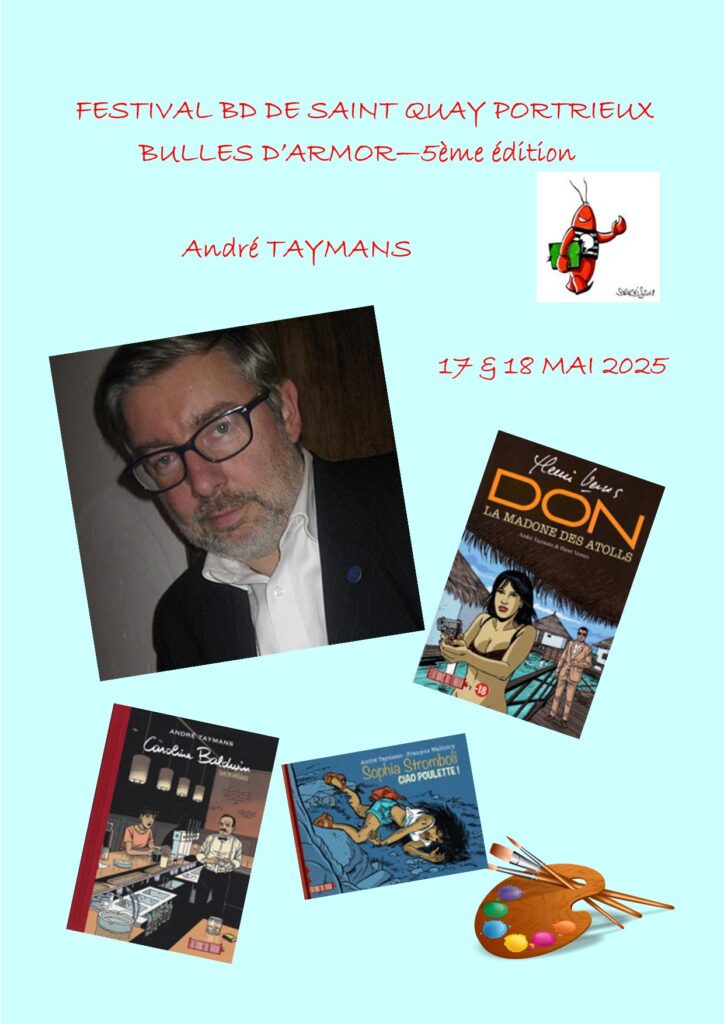 Nous avons le plaisir d’accueillir le talentueux André TAYMANS. Après des études de bande dessinée à l’Institut Saint-Luc de Bruxelles et de nombreux voyages à travers le monde, André Taymans publie chez plusieurs éditeurs (Lefrancq, Alpen-Humanos, Lombard, Dupuis, Bayard, Glénat…).