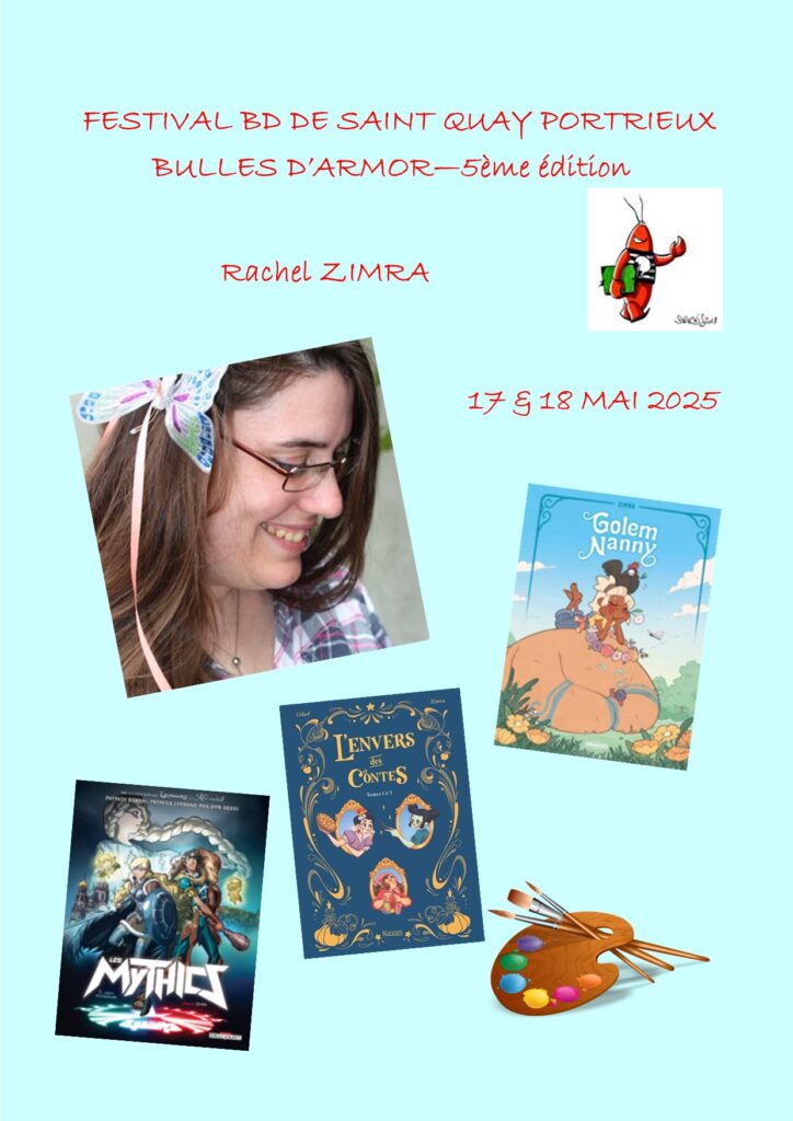 Autre nouvelle invitée Zimra : cette autodidacte passionnée de bande dessinée signe ses premières planches en 2008. Elle participe d’abord à des albums collectifs en travaillant parallèlement dans les secteurs de la presse, du roman jeunesse, de la publicité et du jeu vidéo. Elle illustre ensuite chez Glénat les deux tomes de Mytho, une série BD mêlant diverses mythologies puis les trois tomes de L’Envers des contes chez Kennes.